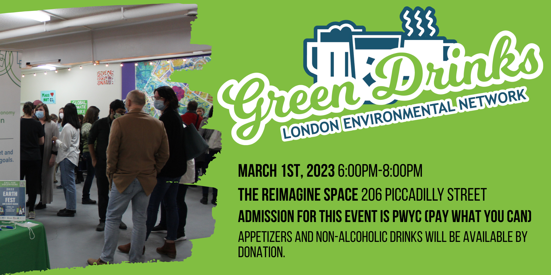 Green Drinks is a regular networking event series for anyone interested in talking about local environmental topics. We hope you can join us to chat with like-minded neighbours, learn about our new program offerings, and connect with other people interested in growing a healthier, more sustainable city!