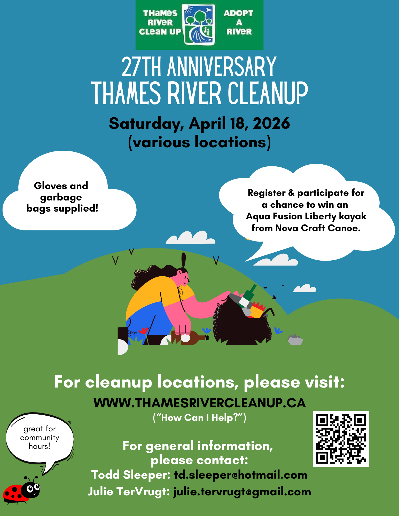 Join us on Saturday, April 18th, 2026 for our 27th annual Thames River Clean Up!